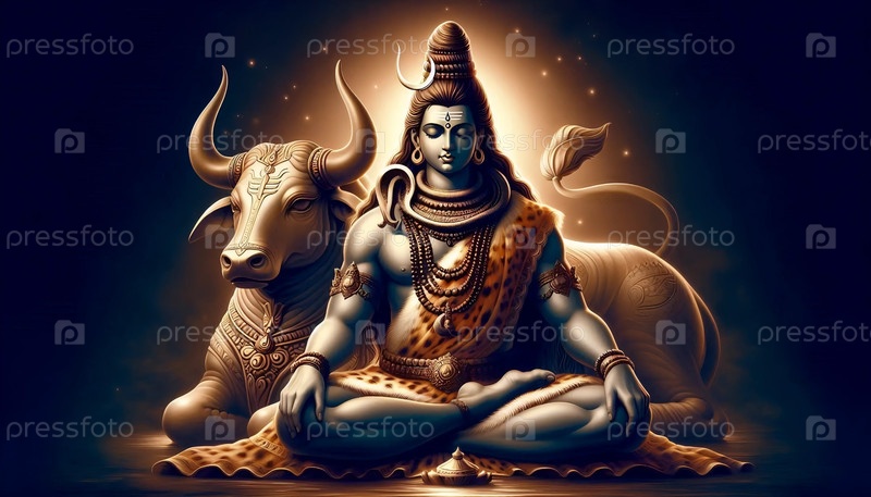 Господь Шива со священным быком Нанди, Ai generated image