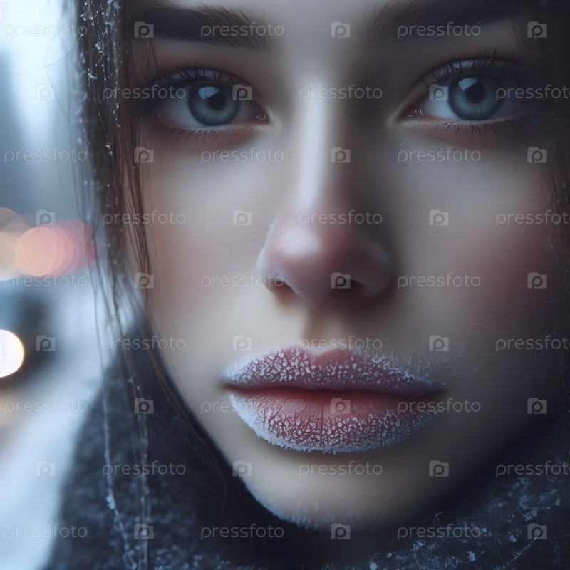Замороженные губы крупный портрет, Ai generated image