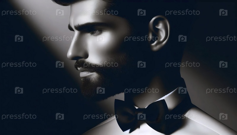Профильный портрет с шелковым галстуком и бородой, Ai generated image