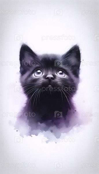 Милая акварельная живопись просящего кота, Ai generated image