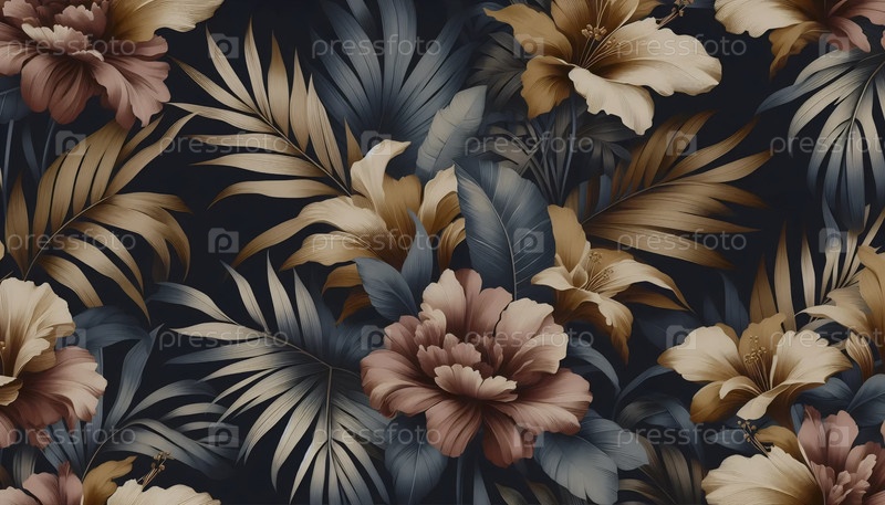 Ботанический шаблон темно-синий горчичный розовый ткань цветочная печать, Ai generated image