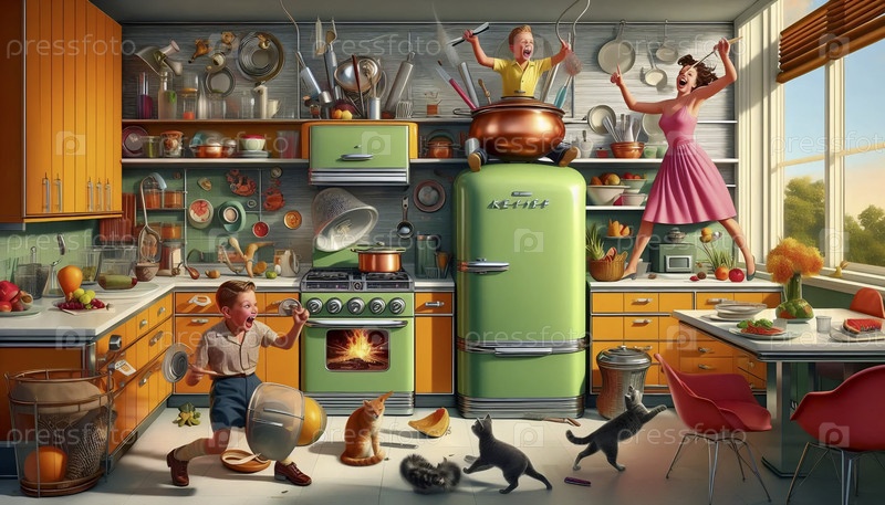 Кухонная симфония искусства середины века, Ai generated image