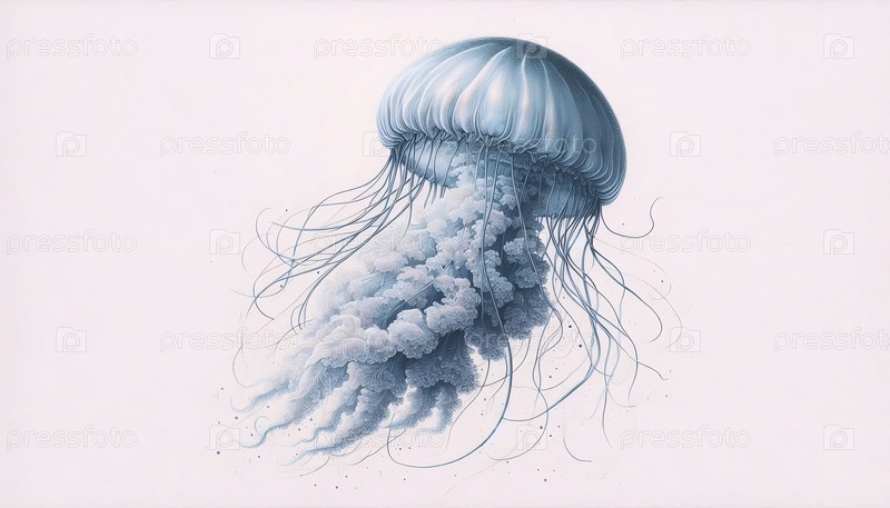 Дрейфующая медуза чернила рисование художественная печать, Ai generated image