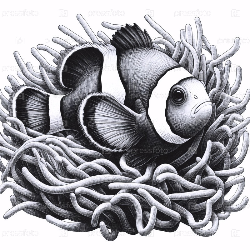 рисунок с чернилами рыб-клоунов