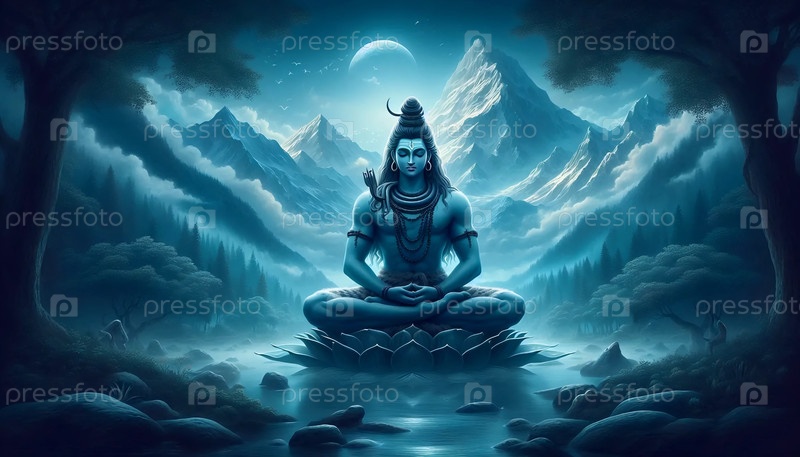 Господь Шива в позе лотоса, Ai generated image A