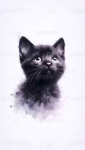 Милая акварельная живопись просящего кота, Ai generated image