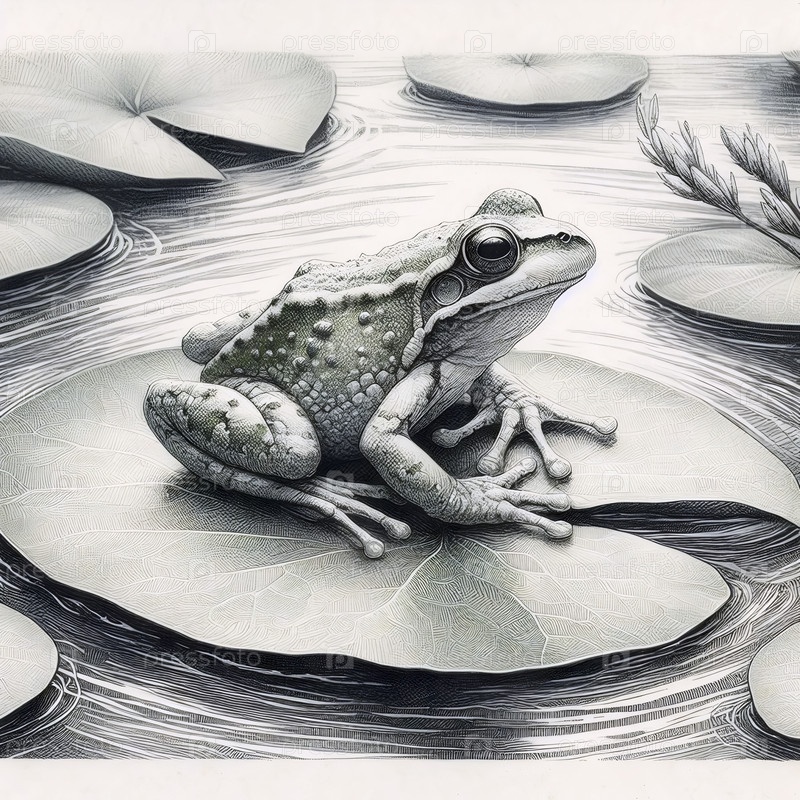 лягушка на лилии цыпочка чернила рисунок