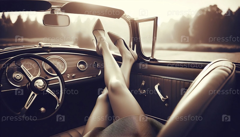 Ретро автомобильное окно ноги арт-принт, Ai generated image