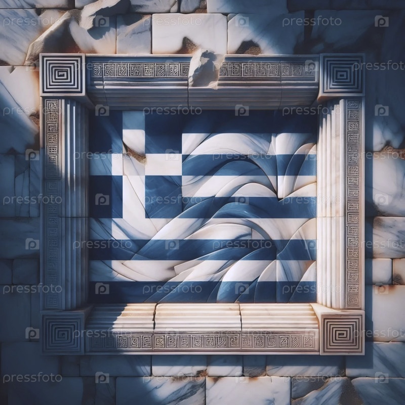 Греческий флаг в древней мраморной архитектуре, Ai generated image A