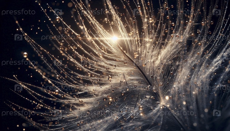 Макросъемка перьев, шиповников, захватывающих свет, пыли, вращающейся вокруг них, Ai создала изображение