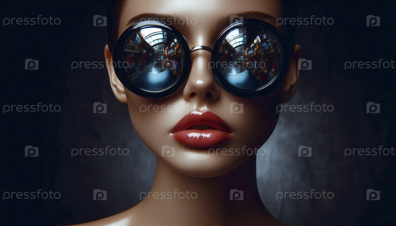 Портрет, скрытый за огромными овальными солнцезащитными очками, Ai generated image