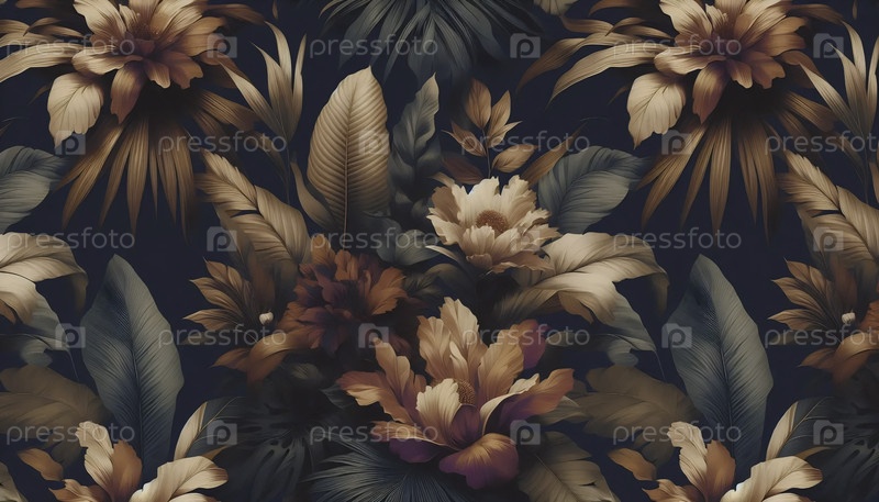 Ботанический шаблон темно-синий горчичный розовый ткань цветочная печать, Ai generated image