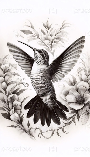 Летающий колибри чернила рисование арт-принт, Ai generated image