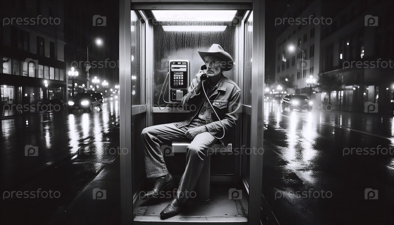 Ковбой в неоновой телефонной будке, Ai generated image