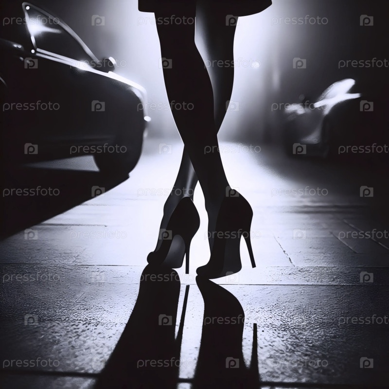 Винтажный черно-белый фотографический принт женских ног, Ai generated image