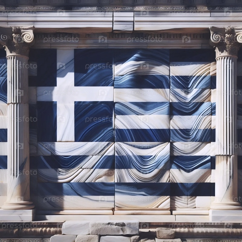 Греческий флаг в древней мраморной архитектуре, Ai generated image A