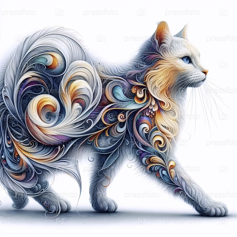 Художественный иллюстративный принт кошки, Ai generated image