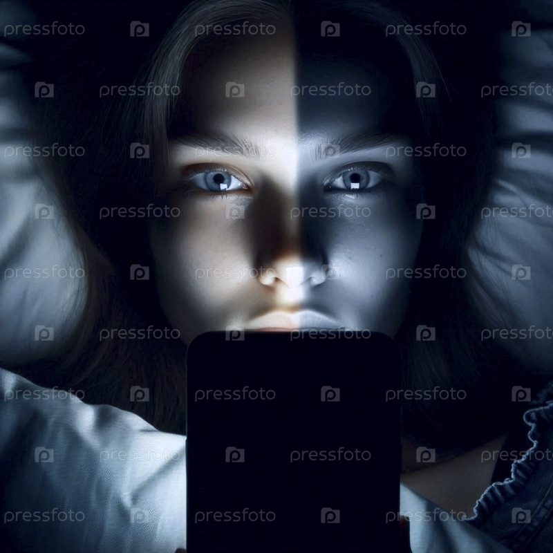 Лицо, полуосвещенное светом смартфона, Ай создал изображение