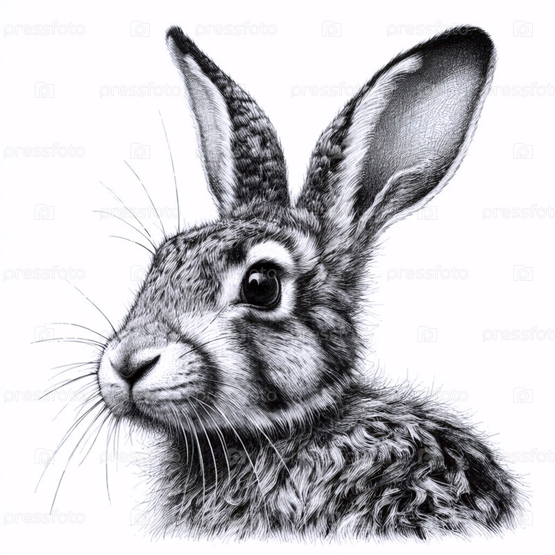 Bunny ink drawing art print, Ai generated image A Аи создал изображение с чернилами кроликов