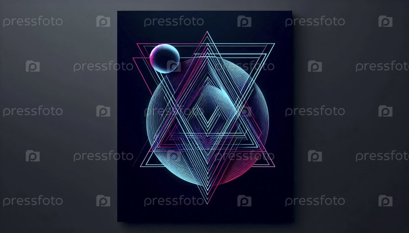 Цифровой неоновый геометрический художественный плакат, Ai generated image A
