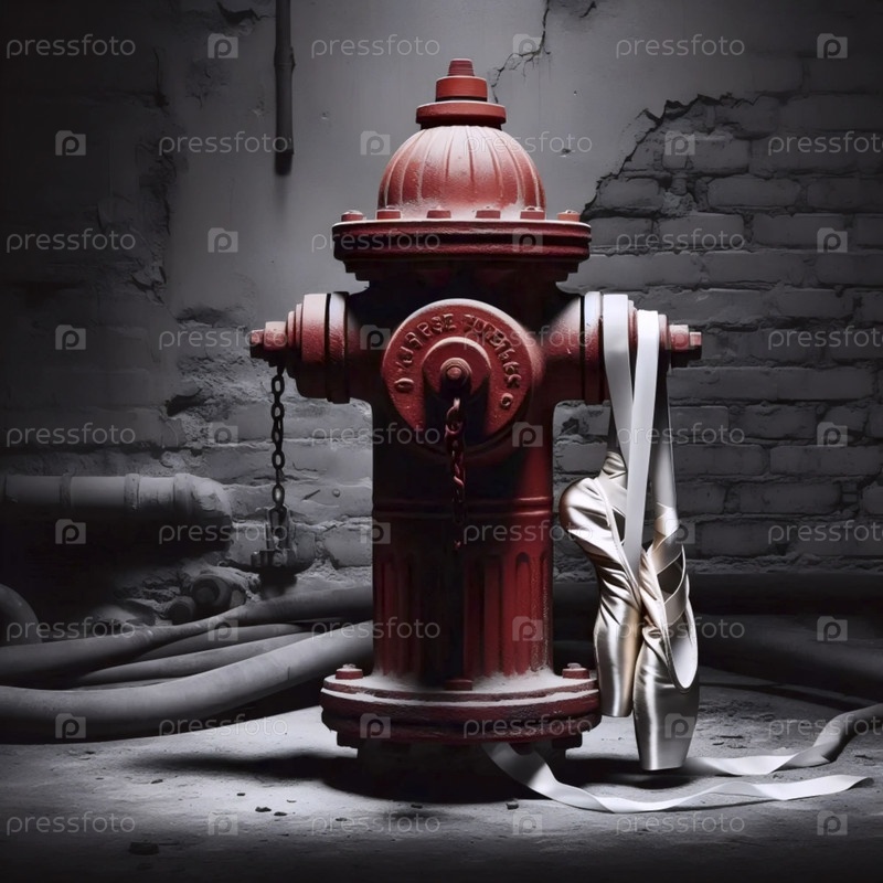 Обувь Pointe висит на пожарном гидранте за кулисами, Ai generated image