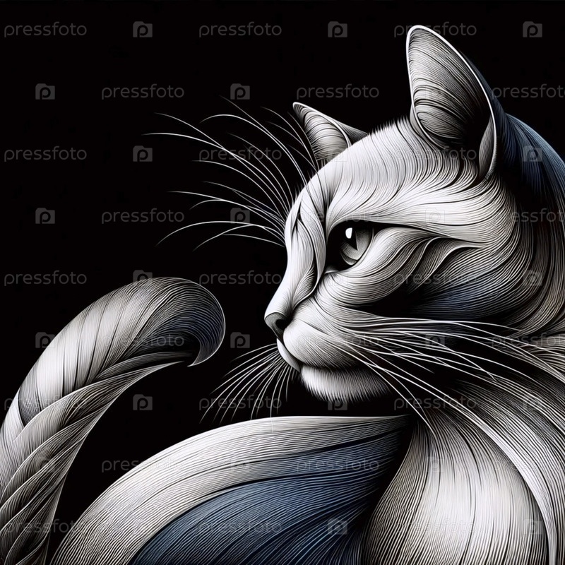 Художественный иллюстративный принт кошки, Ai generated image