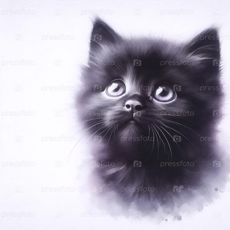 Милая акварельная живопись просящего кота, Ai generated image