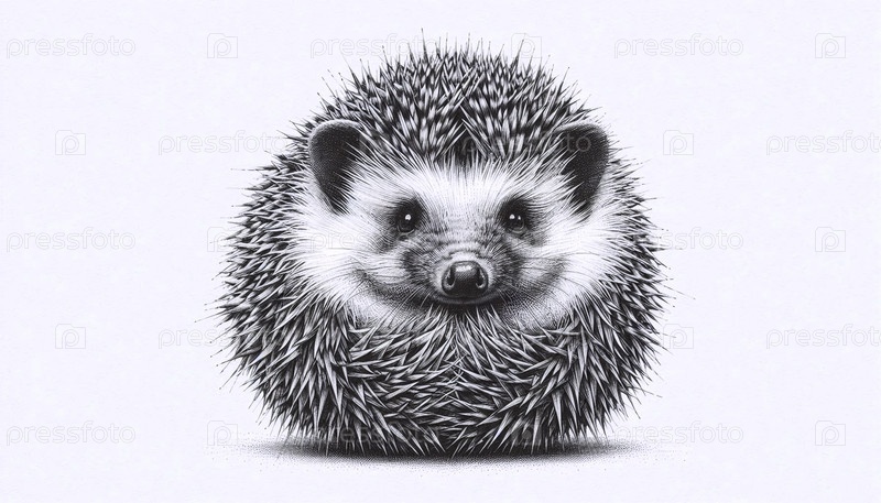 Curled Hedgehog чернила A drawing art print, Ai создал изображение