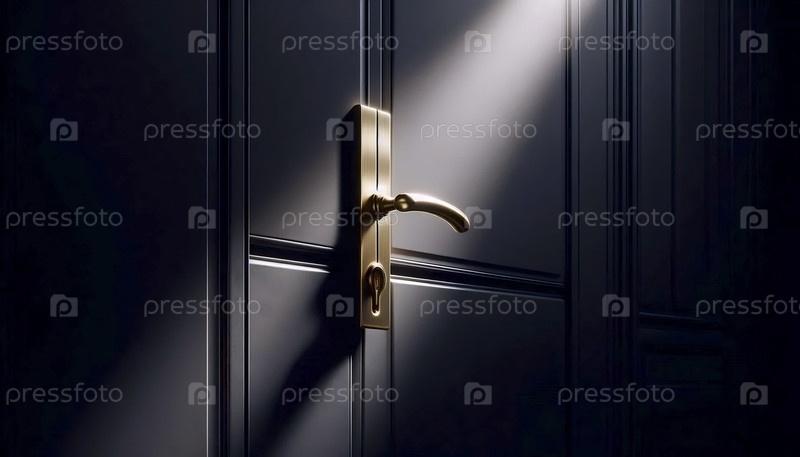 Макет одной латунной дверной ручки на матовой поверхности двери из древесного угля, Ai generated image
