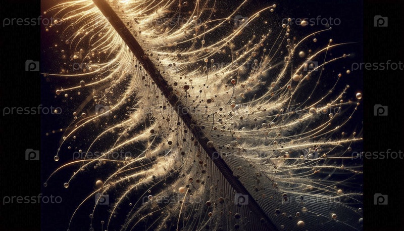 Макросъемка перьев, шиповников, захватывающих свет, пыли, вращающейся вокруг них, Ai создала изображение