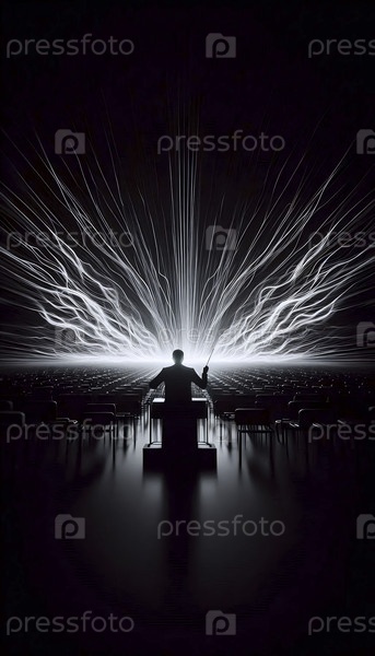 Широкий, минималистичный снимок в темной пустой звуковой сцене Ай создал изображение