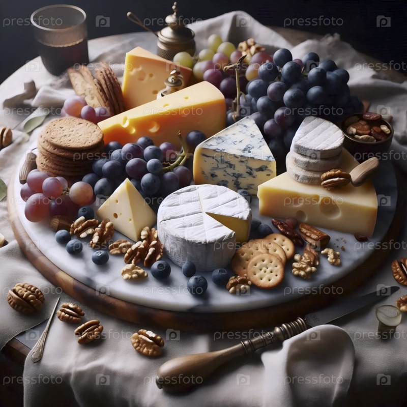 Красиво оформленная сырная доска на мраморе, Ай создала изображение