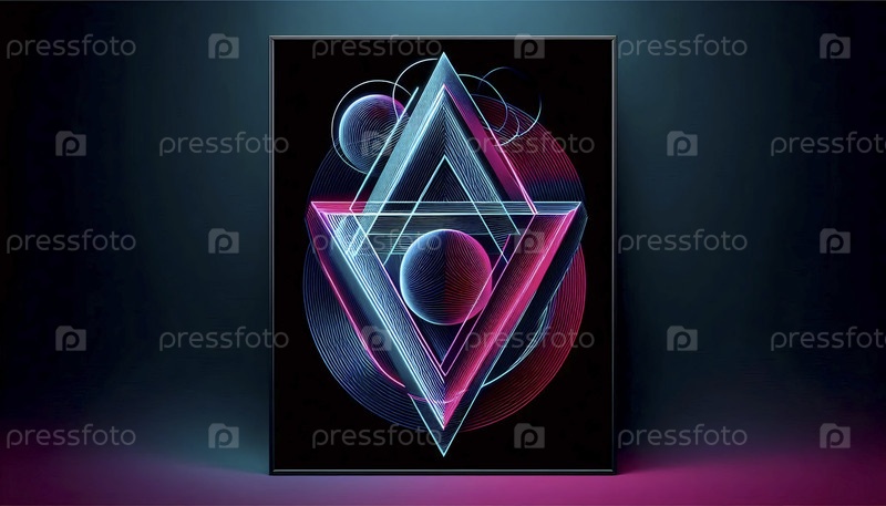 Цифровой неоновый геометрический художественный плакат, Ai generated image A