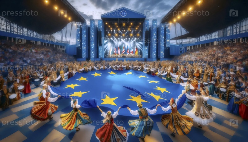 Флаг Европейского Союза в культурном фестивале разнообразие, Ai generated image A
