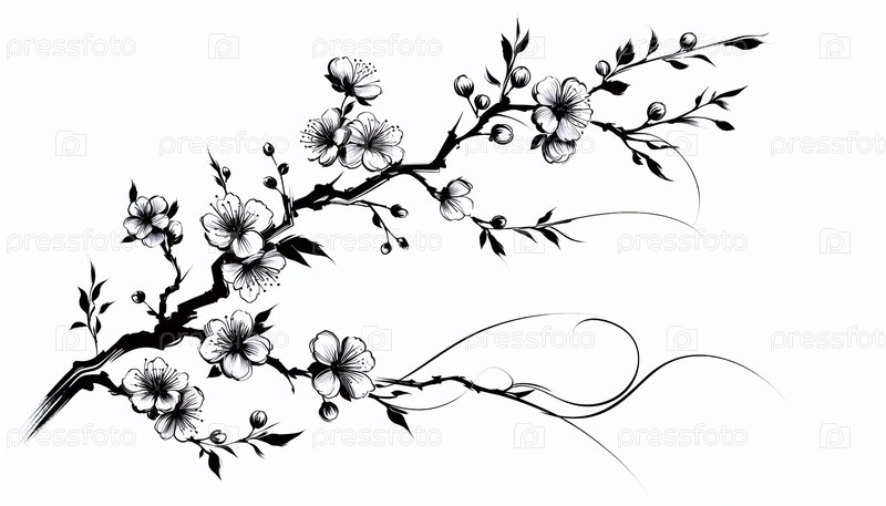 Вишневый цветок ветви линейного искусства, Ai generated image