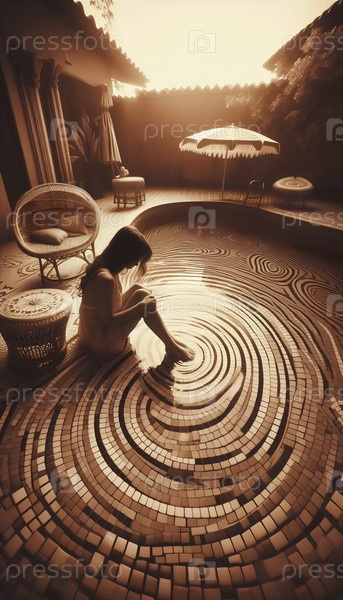 A sepia tone pool dipping moment, Ai generated image - момент погружения в бассейн с сепией тона