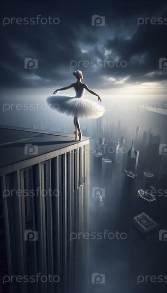 Балерина на крыше небоскреба, Ai generated image
