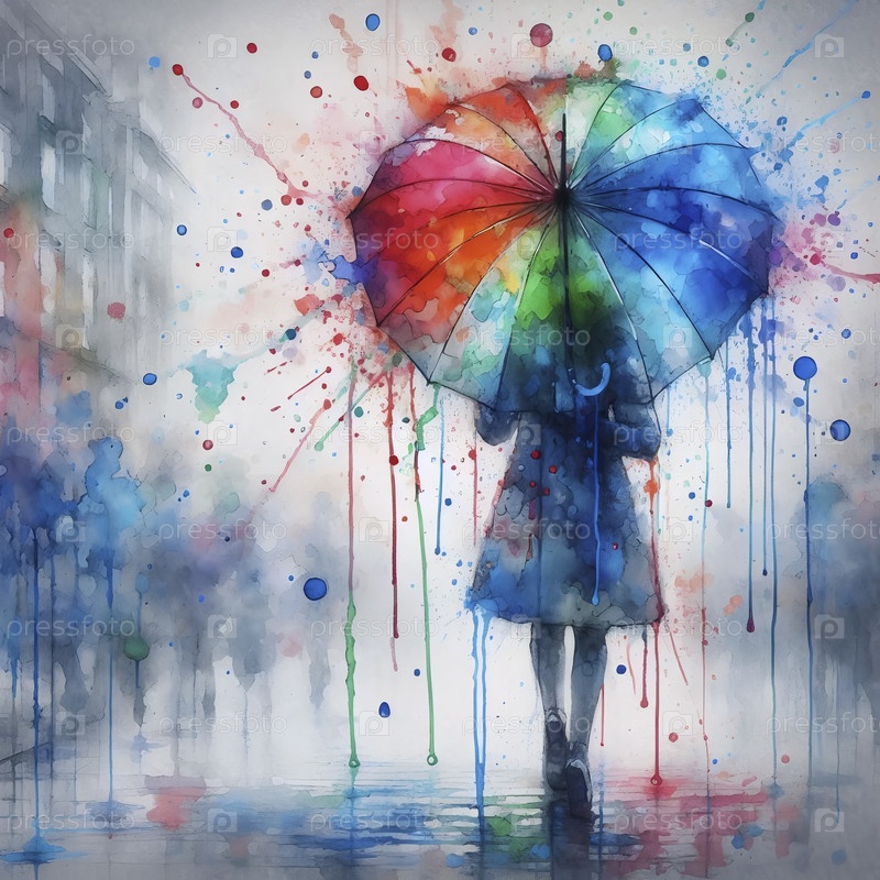 Зонтик под акварельным дождем, Ai generated image