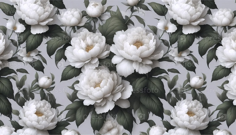 Плитка с бесшовным узором белых пионьев, Ai generated image