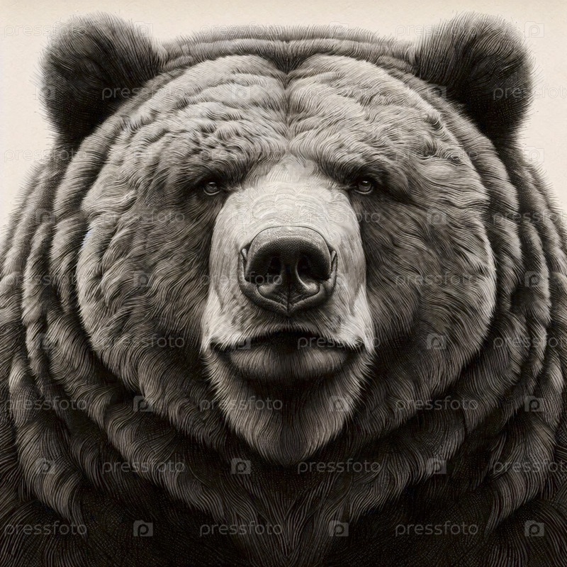 A mighty bear ink drawing art print, Ai generated image Веселый медведь чернила рисование художественная печать, Ай создал изображение