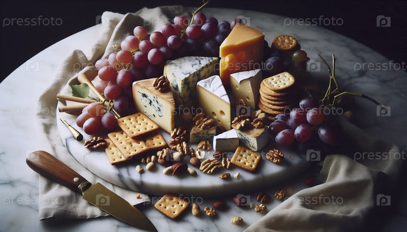 Красиво оформленная сырная доска на мраморе, Ай создала изображение