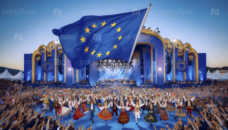 Флаг Европейского Союза в культурном фестивале разнообразие, Ai generated image A