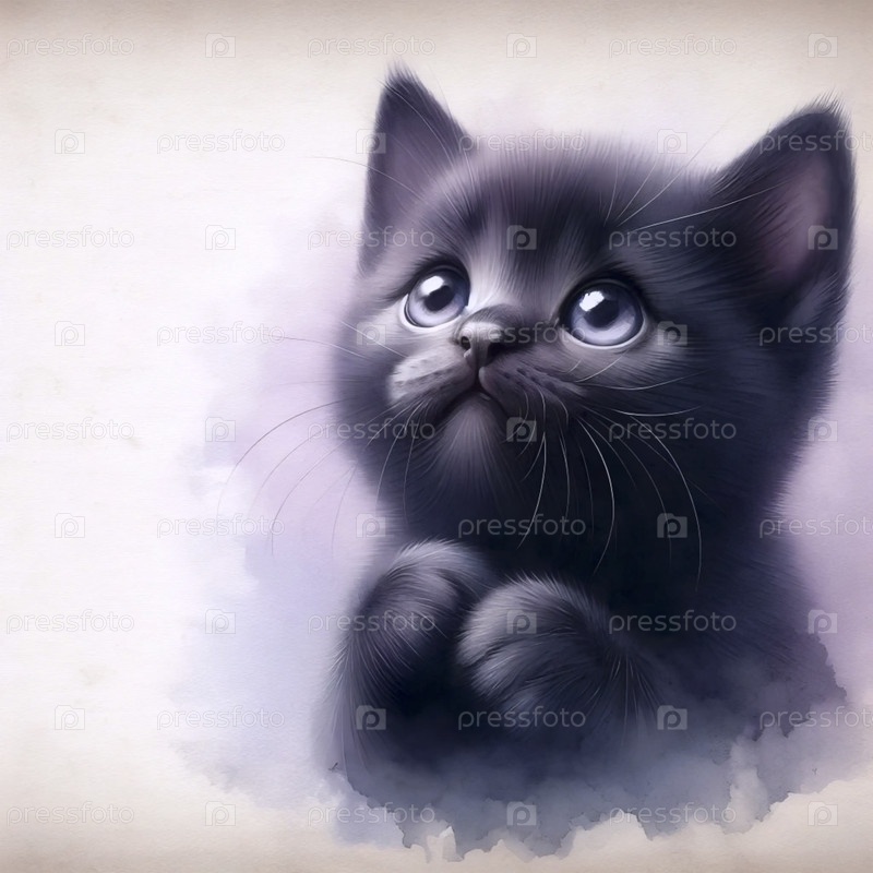Милая акварельная живопись просящего кота, Ai generated image