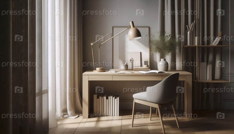 Элегантный нейтральный уголок домашнего офиса, Ai generated image