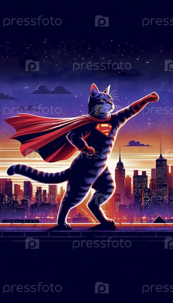 Супергерой-кошка в плато, афиша Ai generated image