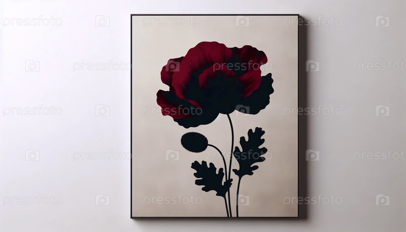 Современный черный цветочный стеновой печат, Ai generated image