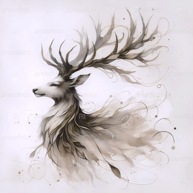 Величественный олень с рогами акварельная печать, Ai generated image