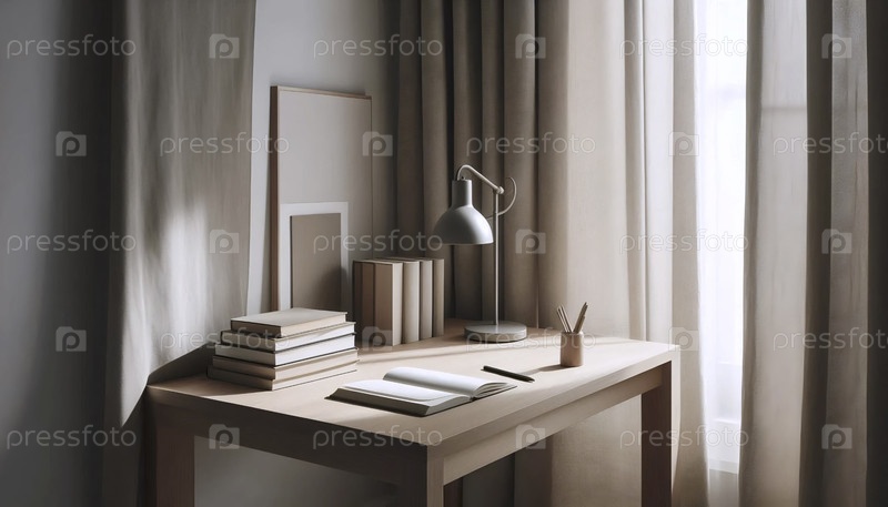 Элегантный нейтральный уголок домашнего офиса, Ai generated image