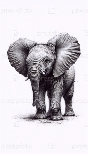 чернильный рисунок детского слона