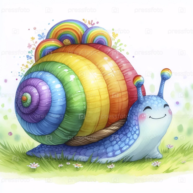 Черепаха с радугой Шелла акварельный арт-принт, Ai generated image